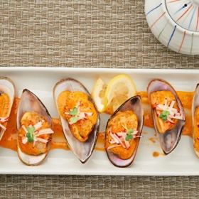Baked Mussels with Sriracha Mayo